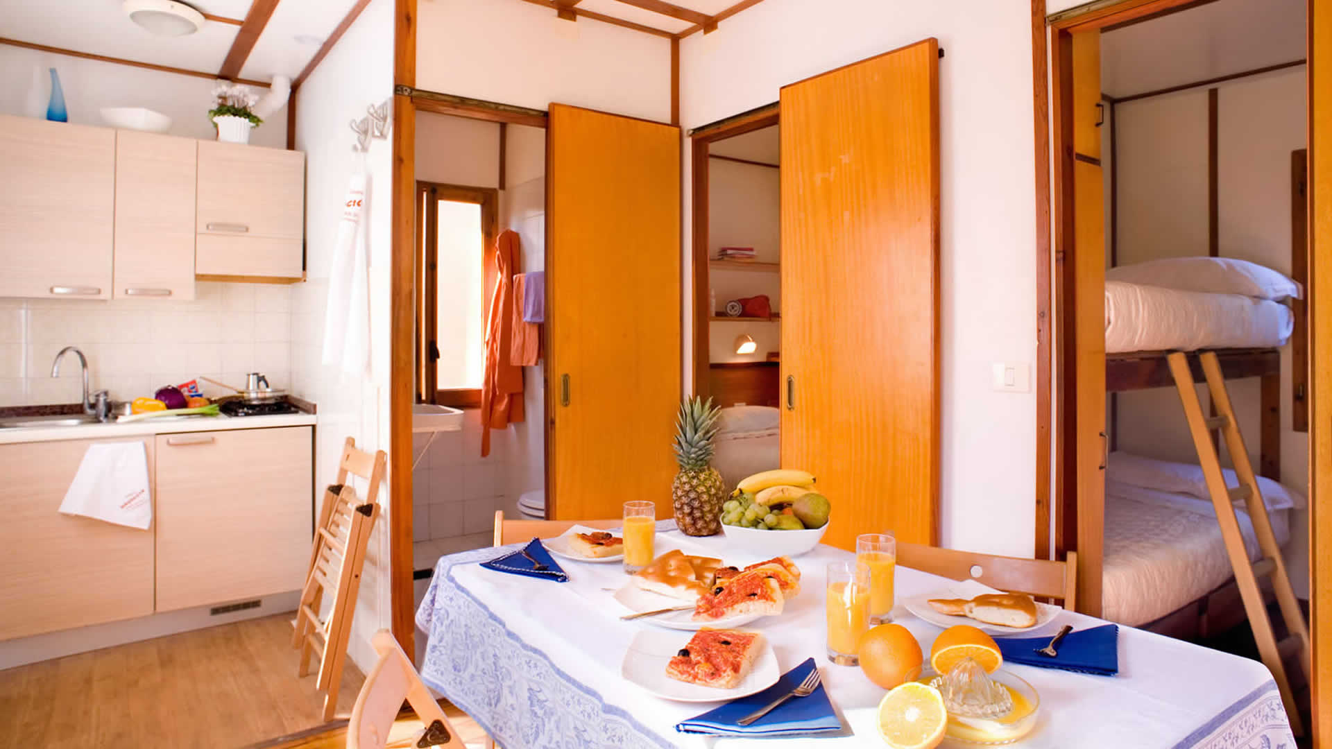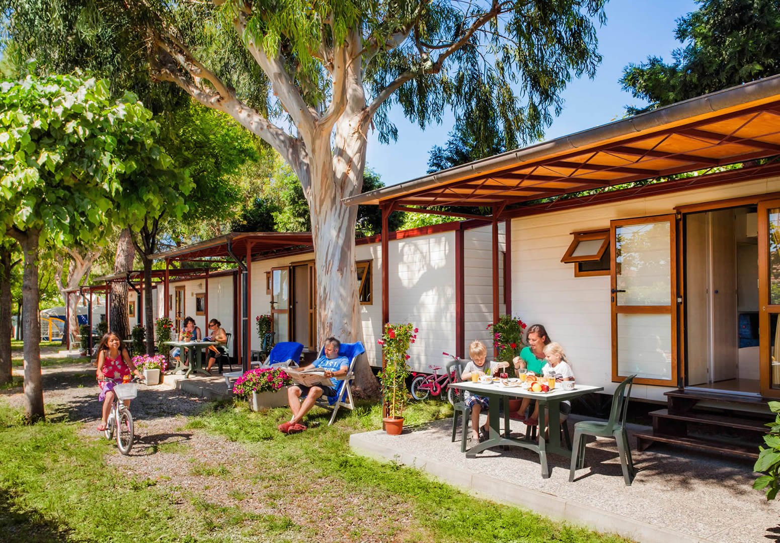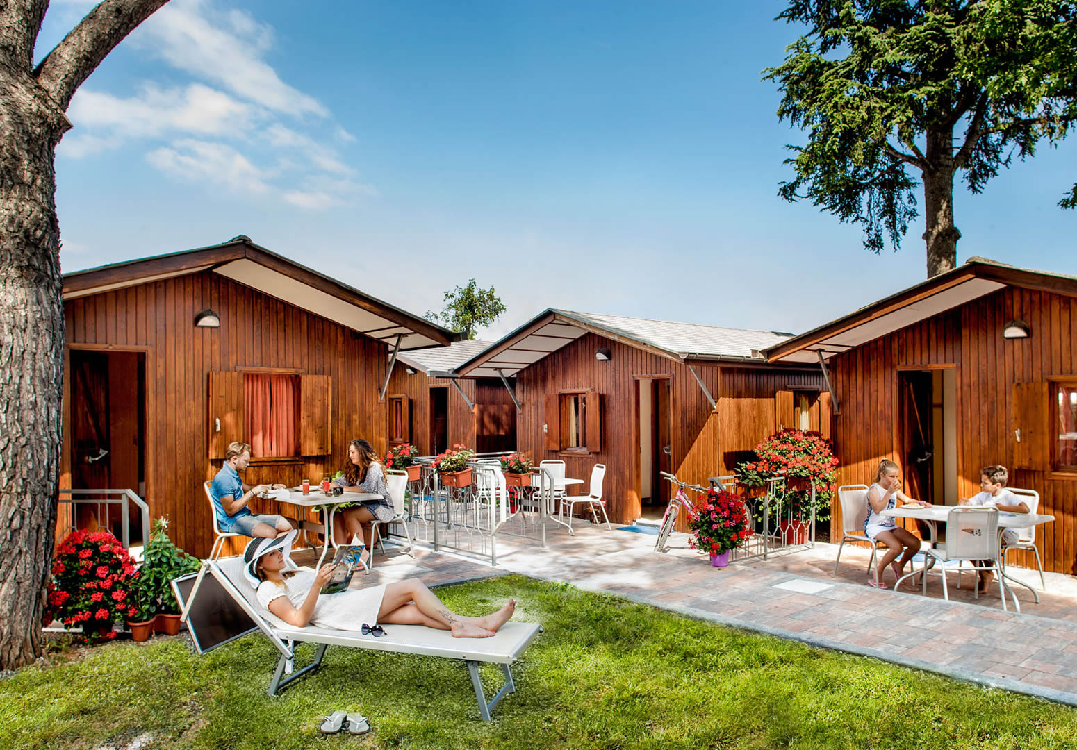 Con il mare a 500 mt, Bungalow, Chalets e Holiday-Homes completamente arredati, in un'oasi verde all'ombra di querce, eucalipti, aceri, abeti e tigli.