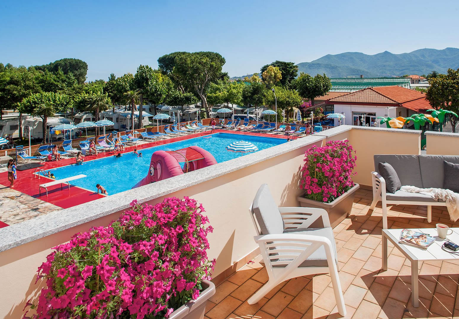 Sono a disposizione degli ospiti un campo da tennis e uno da bocce, una piscina con solarium, un parco giochi per bambini ed animazioni estive.