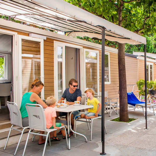 Con il mare a 500 mt, Bungalow, Chalets e Holiday-Homes completamente arredati, in un'oasi verde all'ombra di querce, eucalipti, aceri, abeti e tigli.