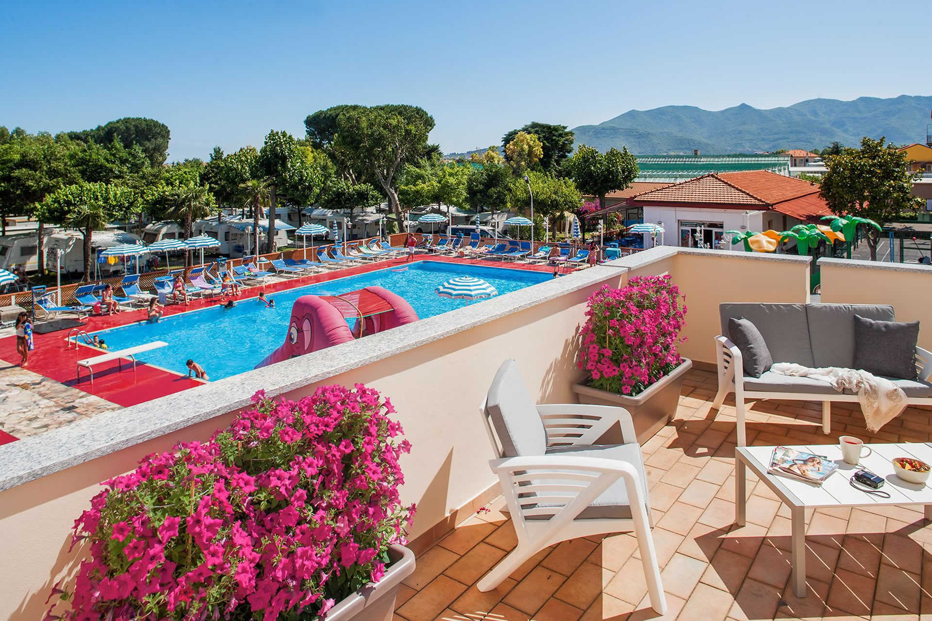 Sono a disposizione degli ospiti un campo da tennis e uno da bocce, una piscina con solarium, un parco giochi per bambini ed animazioni estive.